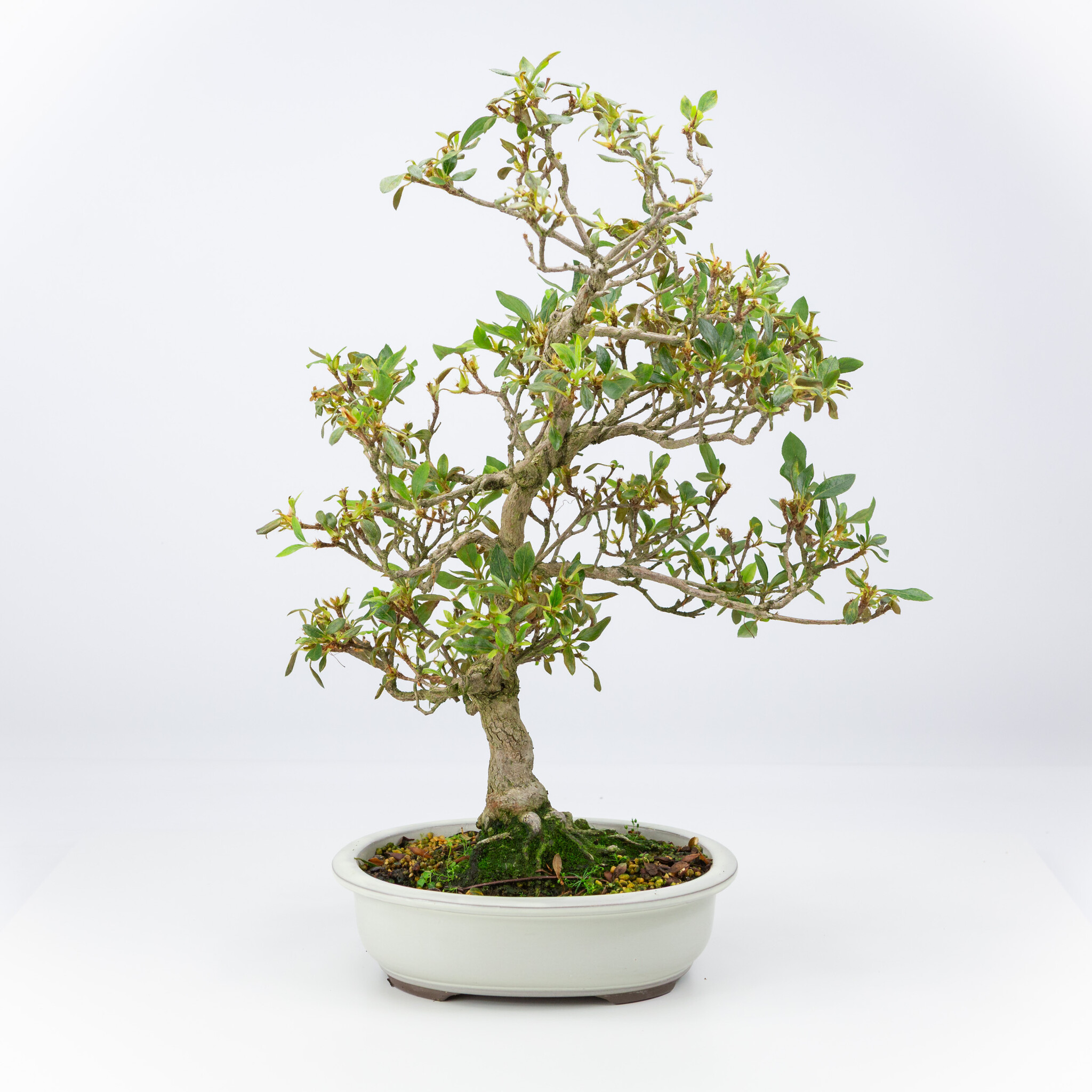 Outdoor Bonsai Rhododendron indicum cream oval pot 23 cm, height ~53 cm