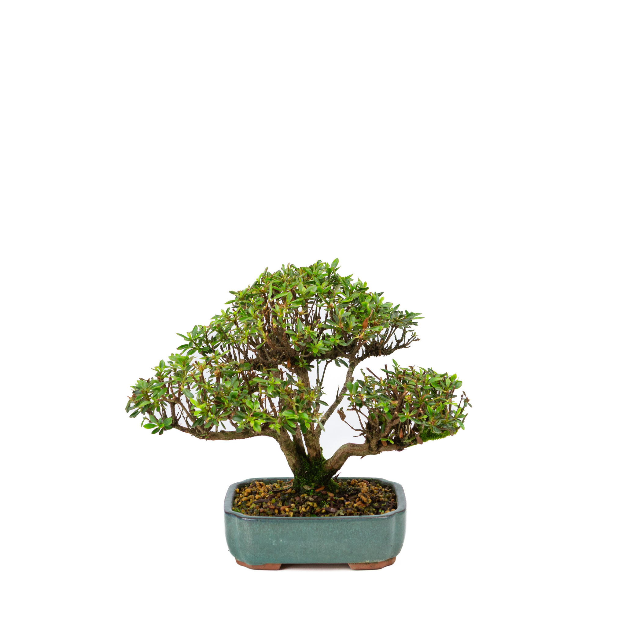 Buiten Bonsai Rhododendron indicum 'Suisei no kagayaki' groene pot 15cm, hoogte ~25cm